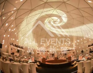 The Geodesic Dome Tent represents an innovative and distinctive architectural style, offering versatile functionality. It serves as not only an eye-catching event dome, ideal for creating showcase spaces at exhibitions and events but also excels as an exclusive setting for VIP gatherings, temporary party venues, and dynamic dining or shopping spaces. Moreover, it finds purpose as a temporary or semi-permanent venue for interactive entertainment, yoga or meditation sessions.